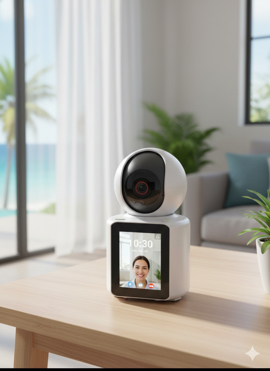 Su diseño robótico con movimiento automático, pantalla interactiva frontal y sistema de videollamadas la convierten en un dispositivo único: puedes ver, hablar, llamar y monitorear en tiempo real, todo desde tu celular.