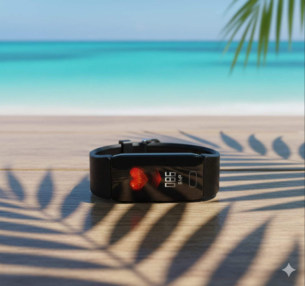 Con su diseño ligero y elegante, esta pulsera inteligente monitoriza tu frecuencia cardíaca, pasos, calorías, sueño y actividades diarias, ayudándote a mantener el control de tu bienestar.